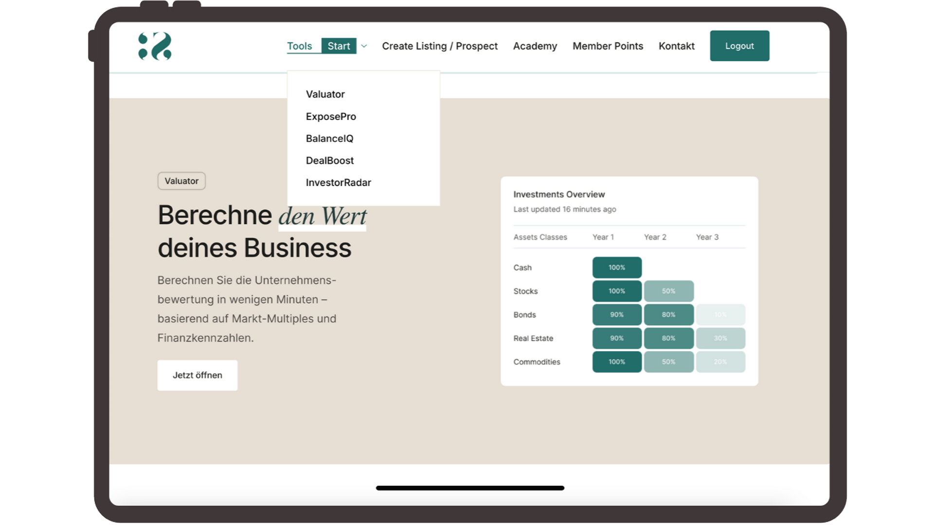 Nutzen Sie unsere Tools, unseren Marktzugang und unser Netzwerk – damit Sie sich auf das konzentrieren können, was zählt: den perfekten Deal.