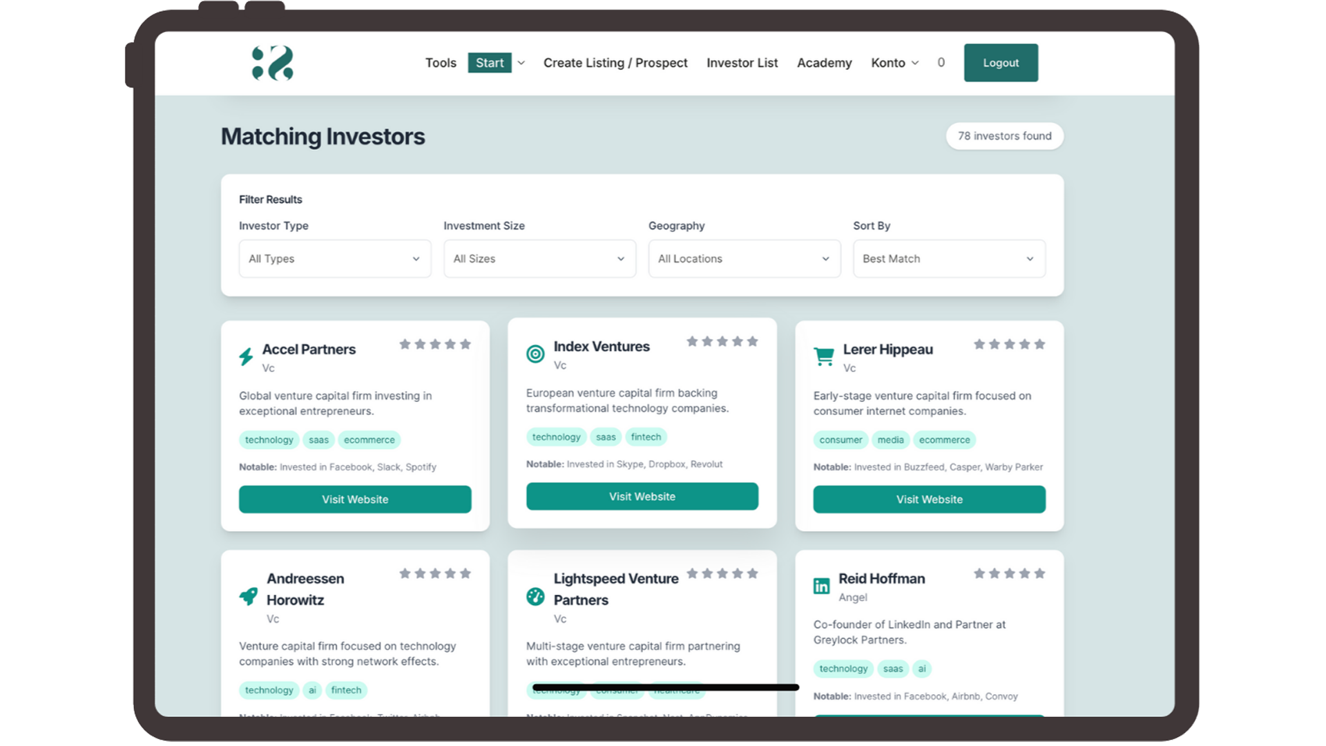 Dank des globalen Listings haben wir unser AI-Tool an ein US-Investorennetzwerk verkauft. Die Plattform hat uns enorm viel Zeit gespart.