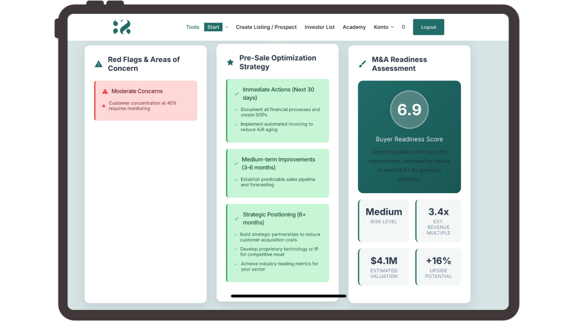 Ich hatte keine Erfahrung mit Unternehmensverkäufen. Die Tools und der Support haben mir den gesamten Prozess verständlich gemacht – vom Exposé bis zur Käuferauswahl.