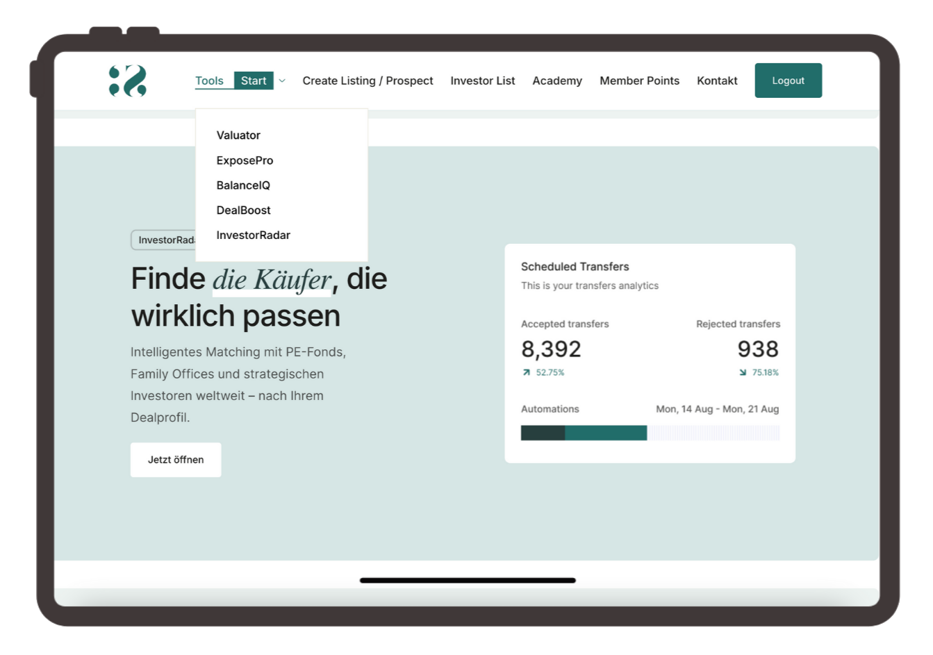 Unsere SaaS-Plattform wurde innerhalb von sechs Wochen über die Plattform erfolgreich verkauft – und das an einen strategischen Investor aus Skandinavien.